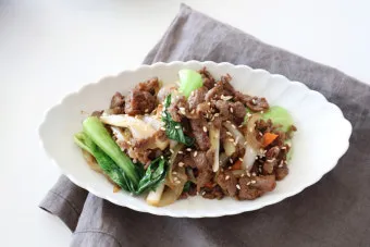 23 소불고기팬조림: 간장 3T, 설탕 1.5T, 배즙 50ml, 마늘 1T, 후추. 강불 5분. 남은 소스에 채소 넣어 마무리.