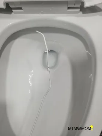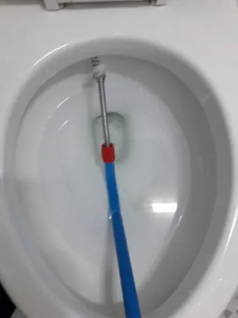 4단계. 클로젯 오거(스네이크). 길이 90~120cm, 끝이 코일 형태로 된 제품을 트랩 방향으로 부드럽게 밀고, 막힌 지점에서 10~20회 시계/반시계 회전합니다. 잡아 빼지 말고 돌려가며 당겨야 섬유질이 엉겨 나옵니다.