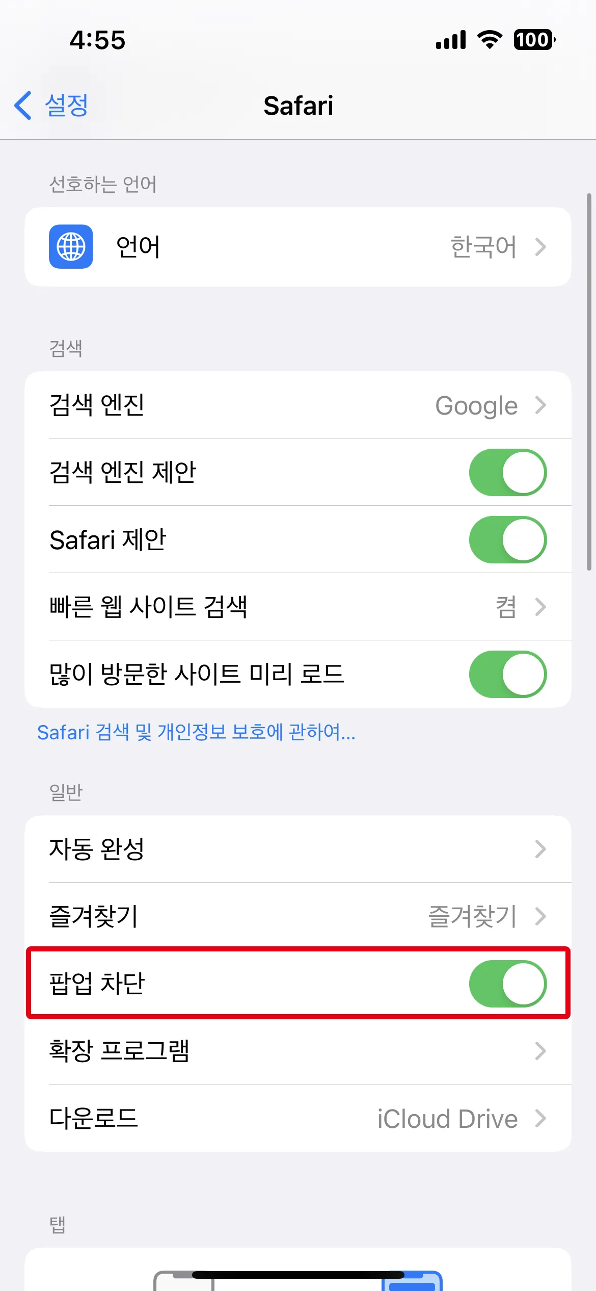 아이폰(iOS) 크롬·사파리 팝업 설정