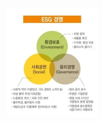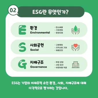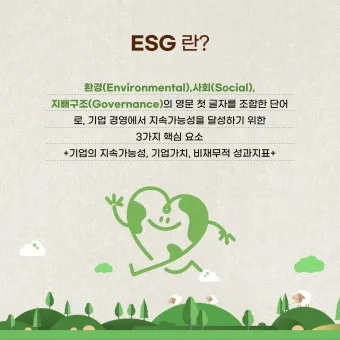 • 핵심요소: 환경(E), 사회(S), 지배구조(G)